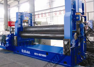 用于常溫狀態下將板材卷成圓筒形、圓弧形、圓錐形。性能優越,結構緊湊、操作方便。上輥升降、翻倒裝置采用液壓驅動。主傳動由電機通過三角帶傳遞,減速器帶動兩下輥驅動,卷制柔性好。采用PLC可編程顯示器控制,上輥升降采用位移傳感器檢,測數顯表顯示。提高產品效率和產品質量,翻倒架采用液壓翻倒。